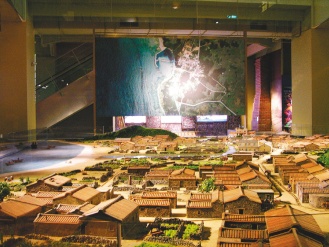 2樓望安鄉(xiāng)中社村模型以30比1的比例壯觀呈現(xiàn)花宅古聚落全貌,在文史任務(wù)者曾文明指導(dǎo)下,模型里每一座古厝與街景都經(jīng)過考證與實景相符,澎湖縣文化局長曾慧香形容這是“世界級”的古聚落模型。