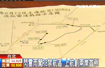中新網(wǎng)6月16日電 據(jù)臺(tái)灣TVBS報(bào)道,兩岸直航以來(lái)發(fā)生第一次霸機(jī)事件,臺(tái)當(dāng)局民航部門拿出天氣惡劣的數(shù)據(jù)替FM801班機(jī)背書,不過但同一份數(shù)據(jù)卻掀開一個(gè)不能說(shuō)的秘密,該班機(jī)“抄快捷方式”返航上海,回程穿越敏感的“R8禁航區(qū)”,成為兩岸直航客機(jī)飛越軍事空管區(qū)首例。