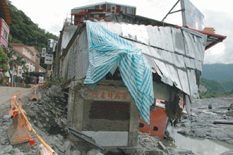 這次被沖走的便利商店老板賴冠諭,昨天下午指著倒塌的金帥飯店基地,出現(xiàn)一排被埋在土石堆里的民房。他說,“這些房子三十七年前被土石掩埋”。