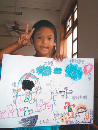 中新網(wǎng)8月18日電 據(jù)臺(tái)灣《聯(lián)合報(bào)》報(bào)道,“我想畫出變形金剛,保護(hù)我家不再讓土石流沖毀!”高雄縣志愿者17日帶著十余名受災(zāi)孩童畫畫,“畫出心中的家”,小朋友們畫出的家園景像令人心疼;還有孩童畫到一半跑到窗戶邊遠(yuǎn)眺說:“好想回家!