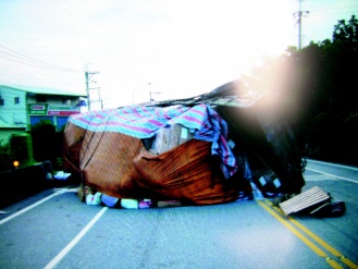 警方調(diào)查,住花蓮縣吉安鄉(xiāng)的余正輝是山本貨運(yùn)公司司機(jī),昨天清晨與助理林清華載賑災(zāi)物資到臺(tái)東太麻里;清晨四時(shí)五十分,大貨車行經(jīng)臺(tái)九線省道富里鄉(xiāng)石牌村彎道,突然失控翻車,滑行十多米撞上路旁護(hù)欄,余正輝被夾在駕駛座上,頭部變形,已沒有氣息。