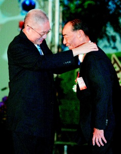 中新網(wǎng)9月29電 據(jù)臺(tái)灣《聯(lián)合報(bào)》報(bào)道,馬英九28日在陽明山中山樓表揚(yáng)四十位“教育奉獻(xiàn)獎(jiǎng)”得主,較特殊的是七十八歲的退休校長(zhǎng)陳淵源,他和教師退休的妻子,昨天同時(shí)慶祝五十二周年結(jié)婚紀(jì)念;八十三歲的“林志玲”爺爺,和臺(tái)灣第一名模同名,也很引人注目。