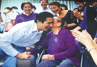 馬英九24日到屏東為豬腳節(jié)加持,在參加豬腳節(jié)之前,先拜訪劉成妹,贈送紅包、金鎖片及敬老狀。馬英九問劉成妹養(yǎng)生之道,她說,吃青菜養(yǎng)生,想睡就睡,家族都長壽。