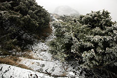 合歡山莊工作人員說,合歡山區(qū)上午未再飄雪,山區(qū)一片霧茫茫,氣溫在攝氏零下1度左右;上午10時以后下起雨來,薄雪可能很快會融化。