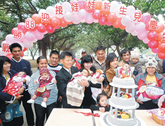 桃源鄉(xiāng)梅山、梅蘭及勤和村的災(zāi)民,自從災(zāi)后下山,有7名婦女生產(chǎn),還有3名婦女也已屆預(yù)產(chǎn)期。昨天高雄縣長楊秋興在災(zāi)民重返家園前,為7名一出生就待在安置中心的嬰兒慶生,并迎接即將出生的娃娃。