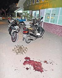 警方調(diào)查,昨下午三時(shí)三十分,蘇男騎摩托車抵屏東臺糖冰品部停車場時(shí),郭女已在廣場等候,兩人停下機(jī)車談判,但才過幾分鐘,蘇、郭兩人一言不合吵了起來,蘇男突取出水果刀欲刺郭女,郭女轉(zhuǎn)頭想逃,但背部仍遭蘇男連刺六刀,傷重不支倒地。蘇男隨后持刀自刺頸部、左手臂、左腕后倒地,由于案發(fā)地點(diǎn)就在市區(qū),兩人很快被人送到醫(yī)院。軍方接報(bào)為避免蘇男情緒波動太大,已派人在醫(yī)院看護(hù),而女方家人趕到醫(yī)院時(shí),低調(diào)不愿多談。兩人均已脫離險(xiǎn)境。
