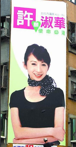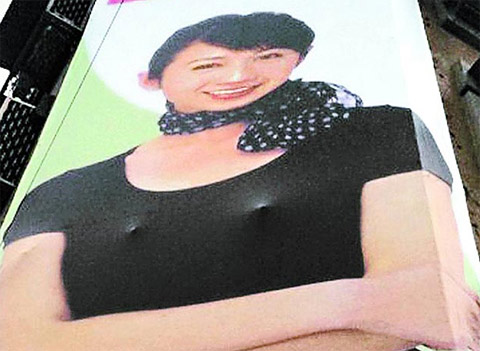 中新網(wǎng)5月19日電 據(jù)臺灣《蘋果日報》報道,臺北市信義路、松仁路口的臺北市議員許淑華競選廣告帆布廣告牌,于20多天前設(shè)立,因當(dāng)時晚上施工的人員未拆下帆布后方凸出鐵條,導(dǎo)致廣告上胸部位置有兩點凸起,造成“激凸”效果。