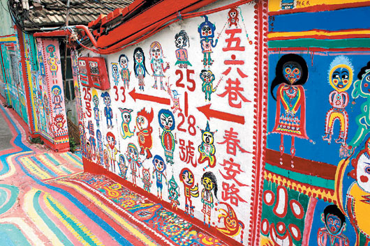 位于臺中嶺東科技大學(xué)后方的“彩虹眷村”,真正名稱是“干城六村”,不過整個(gè)眷村大部分都已經(jīng)拆除,只剩下一小部分眷村房舍仍然存在著,整個(gè)地區(qū)彌漫著過去眷村那種雞犬相聞的親密空間感,以及可能是源于眷村即將拆除的不確定感。