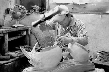 蔡錦旺告訴記者,他曾經(jīng)去過大陸多次,發(fā)現(xiàn)大陸人才濟(jì)濟(jì),而且用工相對便宜,F(xiàn)在,三義有很大一部分的木雕是從大陸進(jìn)口,需要什么樣的作品一張照片傳真過去,當(dāng)?shù)氐膸煾稻湍茏龀霭司懦。所以拼產(chǎn)量,三義沒有優(yōu)勢。他希望,能夠通過不間斷的培養(yǎng)、提高,在原創(chuàng)性、藝術(shù)性上下工夫,讓三義出現(xiàn)更多朱銘這樣的大家,兩岸在設(shè)計(jì)和批量生產(chǎn)上進(jìn)行合作,才是三義木雕以后發(fā)展的方向。(記者 陳夢婕)