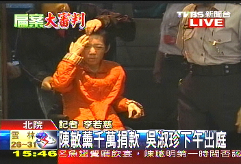 中新網(wǎng)6月16日電 綜合臺灣媒體報(bào)道,陳水扁夫人吳淑珍與馬永成十五日在法庭上對質(zhì),兩人對二○○五年縣市長選舉時(shí),中信金前副懂事長辜仲諒到底捐多少錢給參選臺北縣長的羅文嘉,說法不一。吳淑珍說辜仲諒另外給羅文嘉兩千五百萬元,馬永成則說,辜仲諒在他特別拜托下,在全部捐款中,指定一千五百萬元給羅文嘉。