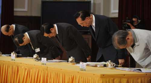 中新網(wǎng)8月19日電 “莫拉克”給臺灣造成慘重災害,馬英九18日親上火線連開兩場記者會。在120分鐘里,馬英九彎腰鞠躬七秒、五度致歉,坦承救災有疏失,除批準“外交部政務次長”夏立言辭呈,他與劉兆玄已決定對失職官員祭出懲處,“時間不會晚過9月初”。 有臺灣媒體認為,馬英九祭出懲處令,預告劉兆玄“內(nèi)閣”即將改組。