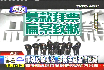 民進(jìn)黨3支廣告里都有密碼,第一波擦亮招牌,最經(jīng)典的鞠躬畫面,代表誠意募款,更隱含著對風(fēng)風(fēng)雨雨的扁案,那沒說出口的歉意。蔡英文在廣告中表示:“我們經(jīng)常被問,民進(jìn)黨的理想性是否仍在?”