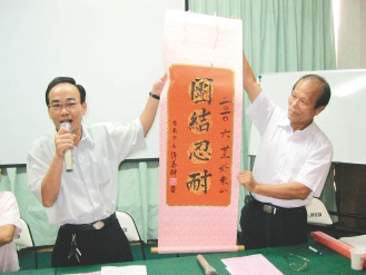 許添財(cái)之友會(huì)及臺(tái)南縣后援會(huì)干部近三百人昨天在臺(tái)南縣東山鄉(xiāng)聚餐,許添財(cái)雖未出席,但送來“團(tuán)結(jié)忍耐”中堂,會(huì)場彌漫主戰(zhàn)氣氛;會(huì)中決議,一旦許添財(cái)要參選大臺(tái)南市長,一定全力相挺。