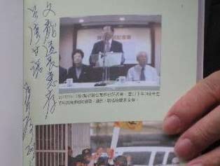 據(jù)“今日新聞”報道,鄭文龍律見完陳水扁,從公文包拿出《臺灣的十字架》,翻開第一頁,上頭寫著“文龍道長惠存,臺灣甘諾!毕骂^再簽上“陳水扁”三個字,注明時間是2009年1月20日土所。
