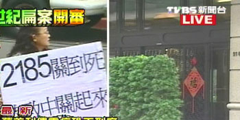 據(jù)臺灣TVBS報道,扁子陳致中、兒媳黃睿靚一身黑衣,搭乘出租車抵達法院。許多群眾在場不斷地對他們嗆聲,有婦人高舉“2185(陳水扁在看守所中的編號)關(guān)到死,陳致中關(guān)起來”牌子抗議,警方絲毫不敢大意。