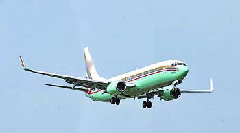 中新網(wǎng)2月2日電 據(jù)臺(tái)灣《蘋果日?qǐng)?bào)》報(bào)道,馬英九搭乘的空軍B737-800型波音客機(jī)(俗稱“空軍一號(hào)”),近日內(nèi)將拖進(jìn)華航維修廠棚檢修,并將陳水扁時(shí)代涂裝的“青蛙機(jī)”(機(jī)腹改為綠底,中間配有紅白藍(lán)線條,也有人稱“牙膏機(jī)”),改回白底藍(lán)邊,預(yù)計(jì)3月即可出廠。