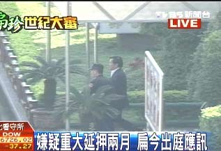 上午8點(diǎn)33分,穿著深色西裝、淺色襯衫,陳水扁搭上北院警備車往法院出發(fā),看守所戒護(hù)人員全程拿DV搜證,扁將就機(jī)要費(fèi)與南港案出庭應(yīng)訊,質(zhì)疑檢方證據(jù)能力,包括辜家兄弟、李界木等人的偵訊光盤,請求勘驗(yàn)證據(jù)能力。