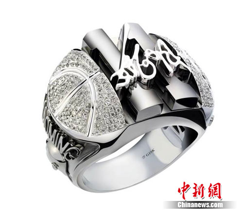這枚姚明版“至尊鉆戒”的表面是籃球紋樣點綴的晶瑩的鉆石,中部用黑金凸起的色塊寫就姚明在休斯頓火箭隊的隊服號碼,其上再鐫刻姚明名字的手寫體,筆力瀟灑遒勁,戒指側面還有姚明的頭像和英文的YaoMing字樣。整個戒指共鑲嵌鉆石248顆,通體莊嚴厚重,對比鮮明,展現(xiàn)出無比的王者之氣,象征著姚明在中國乃至國際籃球界的崇高威望和領袖氣質。