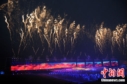 當(dāng)晚的開幕式文藝演出在新落成的那達(dá)慕大會會場舉行,由《夢回草原》、《夢醒草原》、《夢圓草原》和《鄂爾多斯乘著夢的翅膀》等四個篇章組成,包括騰格爾、德德瑪、鳳凰傳奇等蒙古族藝術(shù)家以及維塔斯、wonder girls組合等國際明星的助陣,讓夜色中的鄂爾多斯綻放出耀眼的光芒。