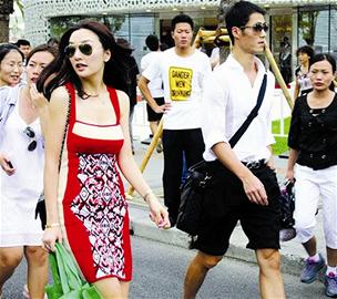 據(jù)拍到這組照片的南方都市報(bào)的記者描述,當(dāng)天在世博園閑逛,準(zhǔn)備前往人氣爆棚的沙特館,沒(méi)想到見(jiàn)到一位紅衣美女從沙特館貴賓通道出來(lái),十分惹眼。正欣賞如花美眷之時(shí),王勵(lì)勤出現(xiàn)了。王勵(lì)勤穿著一件白色的中袖襯衣和一條黑色短褲,背著一個(gè)名牌包包,看起來(lái)心情頗好。兩人走出沙特館后就迅速戴上了墨鏡,并保持至少一米的距離。隨后兩人一路步行,與他們同行的還有王勵(lì)勤的父母及另一名年輕女子。那名年輕女子見(jiàn)到有人拍照,馬上上前阻止。路上,紅衣女子與王勵(lì)勤的母親談笑風(fēng)生,看得出王勵(lì)勤的母親很喜歡她。