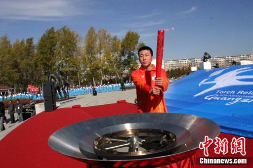 火炬最后傳到長(zhǎng)春市公安消防支隊(duì)凈月大隊(duì)消防員孟繁金手中,由他在長(zhǎng)春雕塑公園主雕塑前點(diǎn)燃圣火盆;鹁?zhèn)鬟f現(xiàn)場(chǎng)還舉行了一系列群眾性全民健身展示活動(dòng),來為廣州亞運(yùn)會(huì)加油助威。