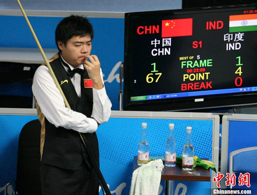 中新網(wǎng)廣州11月15日電(記者 宗晨亮)在低迷了兩輪之后,丁俊暉終于找到手感。憑借著他的神奇發(fā)揮,中國隊以3比1力克印度隊,衛(wèi)冕斯諾克男團(tuán)金牌。