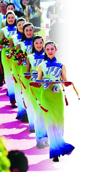禮儀小姐是每個(gè)亞運(yùn)場館的一道風(fēng)景線,很容易就會(huì)把觀眾的眼光吸引過去。運(yùn)動(dòng)員也喜歡與禮儀小姐相遇,因?yàn)樗麄兊慕患喟胫粫?huì)在頒獎(jiǎng)典禮上,而爭金奪銀恰恰正是每個(gè)選手為之奮斗的目標(biāo)。表面上看,禮儀小姐工作輕松,就是在頒獎(jiǎng)禮上亮相當(dāng)“花瓶”。其實(shí)不然,她們的工作充滿挑戰(zhàn)性,表面風(fēng)光的背后,有著常人不甚了解的辛苦。