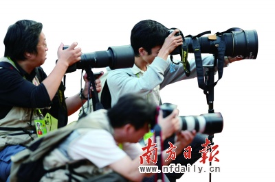 長(zhǎng)槍短炮,嚴(yán)陣以待。誰(shuí)有這么大魅力,讓鎂光燈閃個(gè)不停?這個(gè)人就是“翔仔”———劉翔。