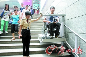 廣州站、廣州東站增設(shè)了無(wú)障礙電梯、衛(wèi)生間、引導(dǎo)標(biāo)志、盲道、低位售票窗臺(tái)、邊檢低位檢查柜臺(tái)。完成南沙港客運(yùn)碼頭、番禺蓮花山港客運(yùn)碼頭、黃沙碼頭、天字碼頭、大沙頭碼頭的無(wú)障礙改造。