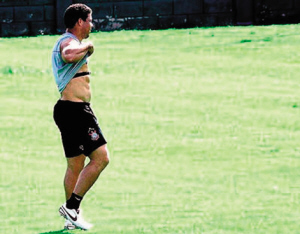 羅納爾多知道訓(xùn)練場(chǎng)邊有很多記者,在過去,他對(duì)記者的鏡頭十分防備,絕不輕易讓他們拍到自己發(fā)福的身體,但這一次卻十分例外。他撩起訓(xùn)練衫,一臉愜意,然后叫著:“拍這里,看,平的!”在科林蒂安,羅納爾多的心情變化是明顯的。