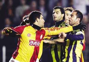 土耳其超級聯(lián)賽昨晨舉行了一場被稱之“國家德比”的焦點大戰(zhàn)。最終加拉塔薩雷0:0戰(zhàn)平費內(nèi)巴切。比賽結(jié)果雖然平淡,比賽過程卻異;鸨ち遥荣愖詈髸r刻雙方球員起了激烈沖突。導(dǎo)火索是加拉塔薩雷隊的攻擊型中場阿爾達·圖蘭在比賽的最后一分鐘,與費內(nèi)巴切的西班牙國家前鋒丹尼爾·古伊薩起了摩擦,圖蘭當(dāng)場掌摑古伊薩。雙方球員見狀都失去了理智,最終發(fā)展成為群毆。