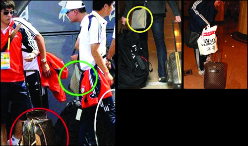 其實,這支國足去年12月首次集中的時候,其行李中大量的“LV”包就引起了外界的極大興趣,當時周海濱和崔鵬的世界名牌裝束還被拍下來發(fā)到了網絡上,LV拉桿行李箱,LV背包,還有Prada的腰帶、勞力士、江詩丹頓等名牌手表,甚至有人進行了估算,光國足的裝備就價值百萬元以上。