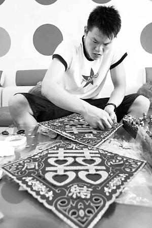 朱芳雨和胡美忙著弄紅雙喜,布置他們的新房。