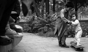 10歲女孩哈迪薩身上的米老鼠T恤表明她中產(chǎn)階級家庭出身,但她只能站在街邊看那些貧苦孩子玩,因為她害怕兩個哥哥手中的電線。去年9月,哈迪薩偷偷地玩了次滑板,結(jié)果雙腳被打出了血。“他們有權(quán)利打我。”哈迪薩說。