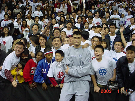 然而,令現(xiàn)場(chǎng)觀看比賽的華人球迷更為激動(dòng)的是,比賽結(jié)束后,姚明在火箭隊(duì)新聞官尼爾森-路易斯的陪同下,來(lái)到了他們中間。在休斯頓姚明球迷俱樂(lè)部十幾位理事的精心組織下,姚明帶著勝利后的微笑,分四次先后與耐心坐等在觀眾席上的數(shù)千名球迷合影。這一歷史性場(chǎng)景后來(lái)多次被全球的體育報(bào)刊雜志登載出來(lái)。