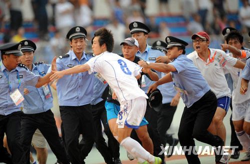 隊員們回到酒店中,還在議論著剛才追打裁判的諸多細節(jié)。吃飯前,天津隊教練在酒店大堂開了一個短會,大意是要求隊員回去好好反省。天津隊員認為,裁判的判罰有不公正之處。