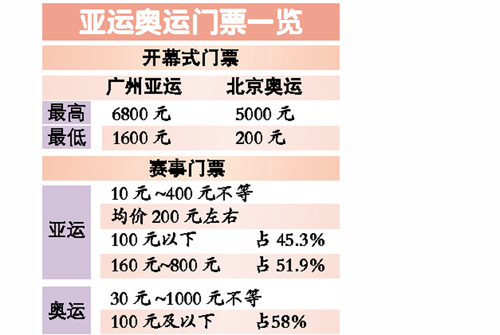對此,許瑞生說:“比北京奧運會高我想那只是個別座位,低票價、服務(wù)更多大眾是我們的重要目標(biāo)。廣州亞運會大部分門票在10元到200元,這部分是我們主打的。”