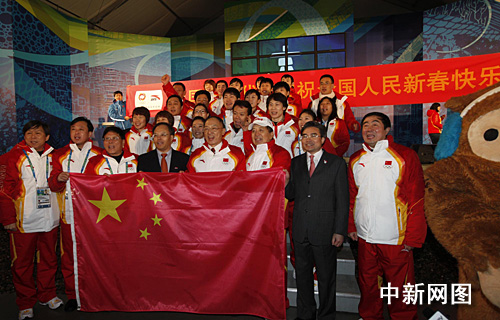 中新網(wǎng)溫哥華2月10日電 (記者 夏宇華 賴海隆)中國冬奧代表團(tuán)今天在雨中舉行了升旗儀式,正式成為本屆冬奧會(huì)大家庭成員。升旗儀式后,中國代表團(tuán)團(tuán)長劉鵬帶領(lǐng)代表團(tuán)成員展開橫幅高聲向全體國人送上新春祝福。