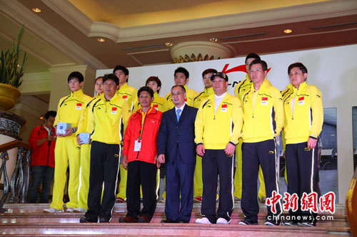 中新網(wǎng)5月9日電(記者 宗晨亮)2010年湯尤杯即將在5月9日-16日開打,國家羽毛球隊已抵達馬來西亞首都吉隆坡。大賽在即,近日國家羽毛球隊參加了“李寧-中國國家羽毛球隊誓師大會”,李寧到場與羽毛球隊總教練共同揭開了這次出征的新裝備,林丹、鮑春來等國家羽毛球隊主力隊員也身穿全新的比賽服裝集齊亮相,總教練李永波則代表國家羽毛球隊信心十足地表示“我們一定要在這次的湯尤杯上繼續(xù)取得佳績,力爭衛(wèi)冕!