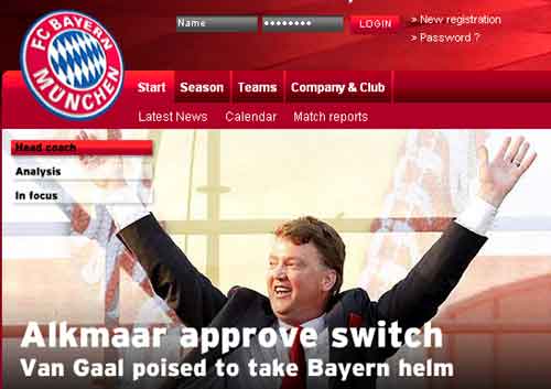拜仁董事會成員魯梅尼格、赫內(nèi)斯和霍普夫納昨天前往范加爾目前所在的阿爾克馬爾俱樂部,與對方商談解約相關(guān)事項非常順利,新科荷甲冠軍同意無償終止合同,而拜仁作為感謝,將在2010年夏與其進行一場友誼賽。