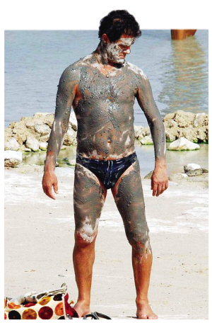 意大利南部小城大多有水溫從32到37攝氏度不等的溫泉,這些景點(diǎn)專門提供一些泥浴治療服務(wù)。來這里享受休閑的卡佩羅及其妻子就這樣一不小心落入了記者的鏡頭。與比賽場邊的威嚴(yán)姿態(tài)大相徑庭,鏡頭前只穿了一條黑色泳褲的卡佩羅從頭到腳、甚至包括臉部都涂滿了深灰色的泥漿,要不是那一頭標(biāo)志性的卷發(fā),意大利人的身份還真有些難以“識別”。身邊的勞拉更將泥漿涂抹得辨別不出了比基尼的花色。低頭看看自己身上的“作品”還算令人滿意,63歲的卡佩羅于是走到勞拉身邊,和自己的老婆開起了玩笑。