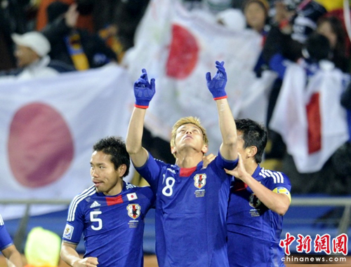 在另外一個(gè)賽場(chǎng),荷蘭隊(duì)2比1領(lǐng)先喀麥隆隊(duì),鎖定了小組第一的名次。如果丹麥隊(duì)不再追兩球,日本隊(duì)將以小組第二名的身份晉級(jí)。不過(guò)在比賽進(jìn)行到87分鐘,日本隊(duì)發(fā)動(dòng)進(jìn)攻大久保嘉人傳球給前插的本田圭佑,本田圭佑禁區(qū)內(nèi)漂亮轉(zhuǎn)身后將球傳給插上的岡崎慎司,后者推射空門(mén)得手,日本隊(duì)3比1領(lǐng)先對(duì)手。