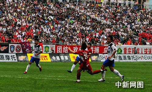 在當(dāng)天比賽中,占盡主場(chǎng)優(yōu)勢(shì)的重慶隊(duì)一開(kāi)場(chǎng)就打出了氣勢(shì),頻頻利用速度和突破沖擊長(zhǎng)沙金德隊(duì),一度形成圍攻金德球門的局面,創(chuàng)造出多次射門機(jī)會(huì)。比賽進(jìn)行到第21分鐘時(shí),重慶隊(duì)進(jìn)攻到金德門前,禁區(qū)內(nèi)的胡偉左腳傳中,長(zhǎng)沙金德隊(duì)門將宋振瑜將球托出底線。