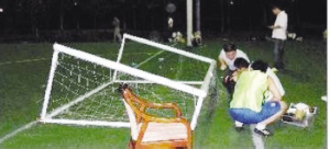3日下午,位于武漢市漢口江灘三期的足球場(chǎng)上發(fā)生一起慘。阂蝗鹤闱蛎哉谔咔驎r(shí),活動(dòng)球門倒下砸在守門員頭上。該守門員被迅速送往醫(yī)院,但因傷勢(shì)過(guò)重?fù)尵葻o(wú)效,不幸死亡。而據(jù)記者調(diào)查,同類球門砸死砸傷人的事件在全國(guó)也并非少數(shù),而多數(shù)悲劇的發(fā)生是因?yàn)榍蜷T質(zhì)量不過(guò)關(guān)造成的。