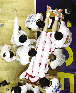 此時(shí)場邊突然沖出一名穿著黑色衣服的人員,憤怒地一拳打向查爾斯。但此人很快就被死死抱住,新疆隊(duì)的球員也圍了過來,和廣東球員互有推搡,被抱住的查爾斯怒氣未消,想找杜鋒和那位想襲擊他的人予以還擊。裁判分開雙方球員,場上砸下許多雜物,更有侮辱性的語言贈與查爾斯。在槍林彈雨中,查爾斯被新疆隊(duì)的球員和部分警衛(wèi)簇?fù)碇x開球場。球場十分混亂。