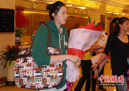 由于飛機(jī)晚點(diǎn),中國(guó)女排姑娘抵達(dá)我市比原定時(shí)間足足晚了1個(gè)多小時(shí)。當(dāng)大巴車(chē)停穩(wěn)以后,女排領(lǐng)隊(duì)胡進(jìn)第一個(gè)走下車(chē)來(lái),向眾人打招呼,緊隨其后的則是身著米黃色T恤衫的主帥王寶泉,隨后15名隊(duì)員陸續(xù)下車(chē),接受學(xué)生們獻(xiàn)上的鮮花。