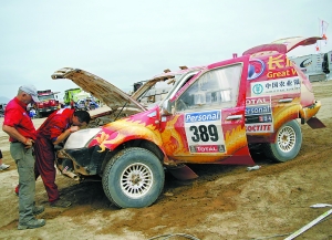 至本報(bào)昨天截稿時(shí),中國(guó)車手除趙永國(guó)退賽外,只有金城摩托車隊(duì)的蘇文敏完成了第七賽段的艱苦比賽。而后續(xù)的情況是,汽車組威麟車隊(duì)的老將盧寧軍以10小時(shí)1分第32個(gè)完賽,成為當(dāng)天汽車組中國(guó)車手中唯一沒(méi)有被罰時(shí)的人。其余3位車手因?yàn)樵诮M委會(huì)關(guān)門時(shí)間之后才返回,均被罰12小時(shí)。在不計(jì)被罰時(shí)間的情況下,長(zhǎng)城車隊(duì)的周勇成績(jī)是15小時(shí)08分45秒,列賽段第44。老盧的隊(duì)友江耀桓用了16小時(shí)38分11秒,賽段成績(jī)第57。興業(yè)銀行酷車時(shí)代的朱金忠用時(shí)16小時(shí)47分30秒,成績(jī)列第58位。