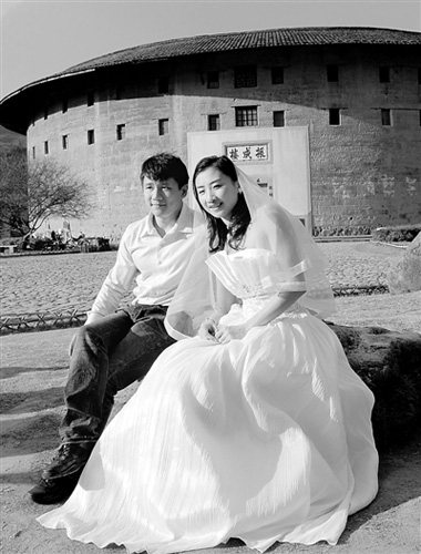 這張疑似婚紗照中,何雯娜身著白色婚紗,而陳一冰上身穿著淺色襯衫,下身的打扮卻很休閑,背景是振成樓。據(jù)何雯娜家人介紹,何雯娜全運(yùn)會(huì)后利用假期回到龍巖,為永定拍了這組宣傳照,這也是何雯娜第二次為土樓做宣傳了。“在拍宣傳照期間,何雯娜換穿了不止一套服裝,白色婚紗是最后一套!焙析┠饶赣H介紹說,“和陳一冰拍照是在拍攝結(jié)束后,并不是婚紗照!