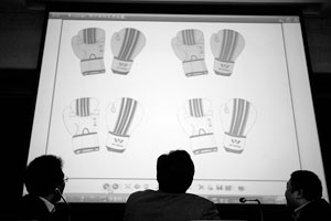 最受人關(guān)注的聯(lián)賽標(biāo)識設(shè)計征集工作歷時3個月,得到了廣泛響應(yīng),共征集標(biāo)識樣稿800多件。中國拳擊聯(lián)賽委員會組織專家對樣稿進行了評審。和公眾對拳擊的傳統(tǒng)印象不一樣,中國拳擊聯(lián)賽的標(biāo)識少了一些鐵血的色彩,而更加活潑、卡通化!拔覀兊脑O(shè)想就是給大家一點新意,不要老是覺得拳擊運動都是既粗又野。我們想表現(xiàn)賽場上勇猛果敢,而賽場下又有些情趣,不失活潑。”中國拳協(xié)主席常建平說。