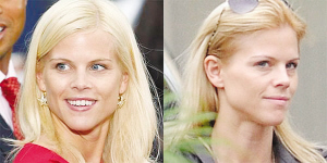 艾琳是一個(gè)標(biāo)準(zhǔn)的金發(fā)美女,來(lái)自瑞典的她曾經(jīng)當(dāng)過(guò)模特,容貌可以用光彩照人來(lái)形容。可是最近的一張照片卻顯示,她似乎蒼老了很多。在這張照片中,艾琳露出了少有的笑容。即便如此,她仍然無(wú)法掩飾自己的黑眼圈和正在擴(kuò)張的眼袋。很顯然,老虎伍茲的性丑聞給她造成了太多心理負(fù)擔(dān),讓她心力憔悴,才給狗仔隊(duì)留下這樣一副“尊容”! ∧ 易